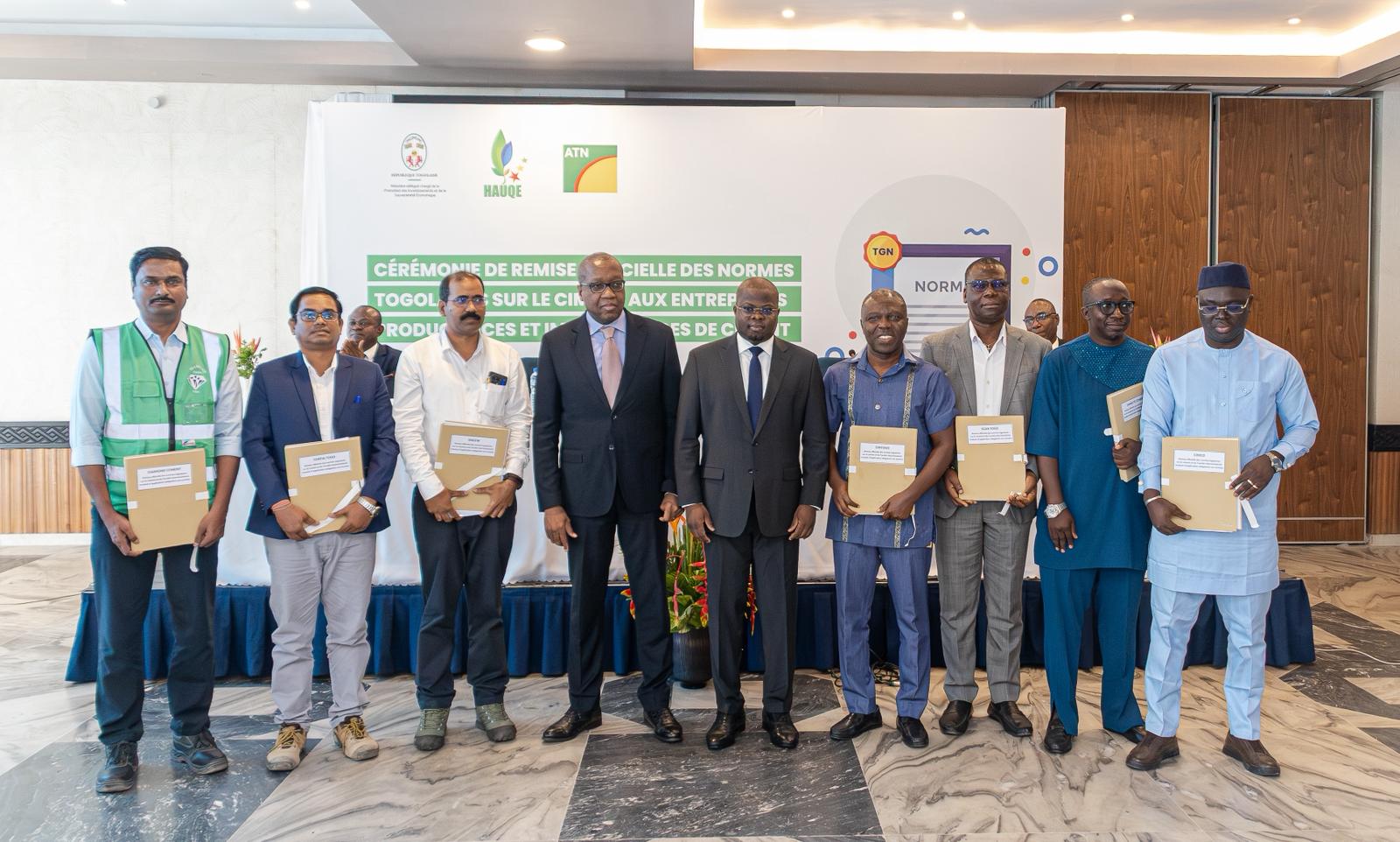 Dans le cadre de la promotion de la qualité des matériaux de construction et de la protection des consommateurs, le Ministère délégué chargé de la Promotion des Investissements et de la Souveraineté Économique, à travers la Haute Autorité de la Qualité et de l’Environnement (HAUQE) et sa structure technique l’Agence Togolaise de Normalisation (ATN), a procédé le 16 mars 2026 à Lomé à la remise officielle de trois normes togolaises relatives au ciment aux entreprises productrices et importatrices opérant sur le territoire national.